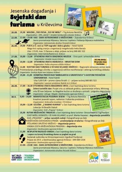Svjetski dan turizma obilježava se brojnim programima u Križevcima. Program će se održavati do 30. rujna. Jučer smo mogli uživati u otvorenim vratima vidikovca i Gradskog muzeja, a u nastavku pogledajte što nas dalje očekuje.
