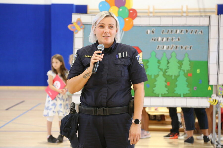 Ispred Policijske postaje Križevci pozdravne riječi uputila je policijska službenica Tea koja je i podijelila učenicima edukativni letak, a Prigorski radio i portal Prigorski.hr su za prvašiće pripremili poklon vrećice s bilježnicama, olovkama i naljepnicama.