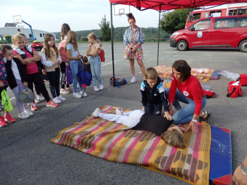 Danas imamo prilike prikazati neke od postupke spašavanja života, poput reanimacije, zamatanja ozlijeđenih osoba i druge. Već nekoliko godina surađujemo s Udrugom Preventivni program, ali prvi puta smo u vašoj školi kako bi promovirali prvu pomoć – kazala je  Đurđica Trbus, predsjednica Društva Crvenog križa Koprivničko-križevačke županije. Uz volontere i zaposlenike Crvenog križa ovom je događanju prisustvovala i Đurđica Trakoštanec,  bivša učiteljica hrvatskog jezika u  Osnovnoj školi Sveti Petar Orehovec i  sadašnja potpredsjednica Odbora Gradskog društva Crvenog križa Križevci.