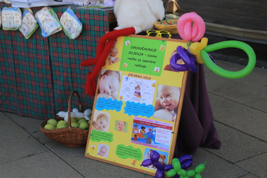 – U suradnji s našim majkama, trudnicama i rodiljama promoviramo svijest o važnosti i dobrobiti dojenja. Ove godine Nacionalni tjedan dojenja obilježava se uz slogan “Omogućavanje dojenja – činimo razliku za zaposlene roditelje”. Na štandu smo pripremili promotivne materijale te zahvaljujem našim sponzorima na tome. Dojenje se često opisuje kao najbolji izbor za majku i dijete, najzdraviji početak s ciljem promicanja dobrobiti dojenja na sve aspekte zdravlja, i djeteta i majke – rekla je Mikulčić.