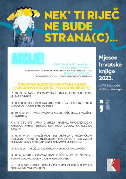 Pogledajte program Mjeseca hrvatske knjige u Gradskoj knjižnici “Franjo Marković” Križevci