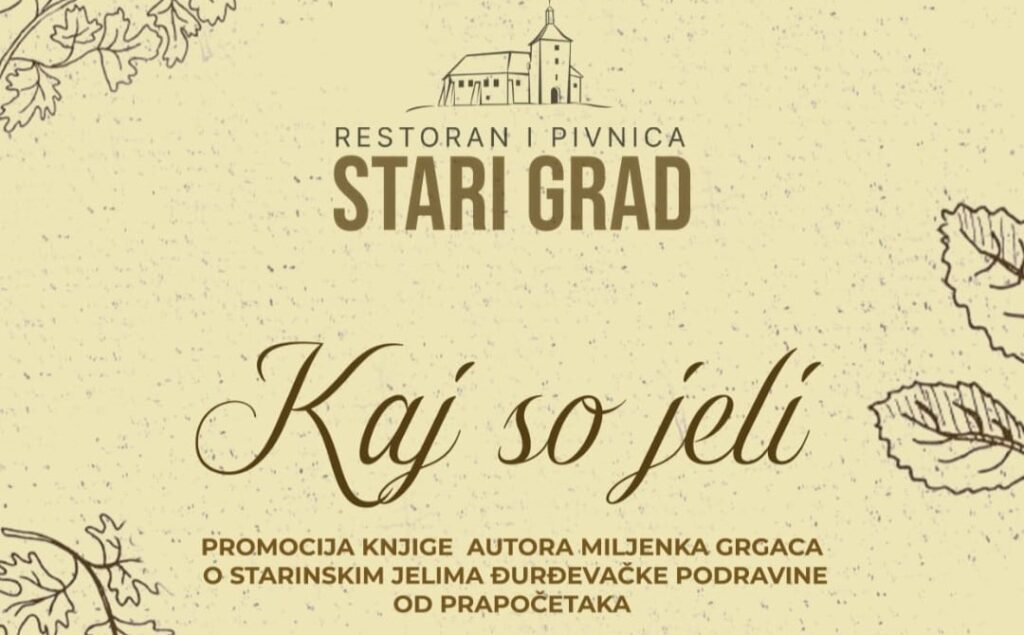 U organizaciji Turističke zajednice Grada Đurđevca i Gradske knjižnice Đurđevac, a u sklopu programa Jeseni u Đurđevcu, održat će se promocija knjige tradicionalne đurđevačke kuhinje “Kaj so jeli” autora Miljenka Grgaca. Promocija će se održati u petak, 27. listopada 2023. s početkom u 19,00 sati u Restoranu i pivnici Stari grad Đurđevac.