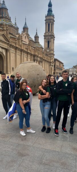 Trotjedna avantura učenika započela je dolaskom u Zaragozu 20.10.2023.. Vikend su iskoristili za upoznavanje grada i španjolskog jezika i kulture. Turistički vodič iz agencije Asociación Mundus proveo ih je kroz glavni trg Plaza del Pilar i učenicima, kroz zanimljiv način i istraživanje, prikazao posebnosti španjolske kulture i povijesti.