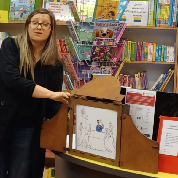 Na Dječjoj čajanci u sklopu Mjeseca hrvatske knjige u Gradskoj knjižnici “Franjo Marković” u Križevcima, djecu je posjetila književnica Ivanka Ferenčić Martinčić koja je sa sobom donijela papirnato kazalište – butaj i crteže te izvela kamišibaj.