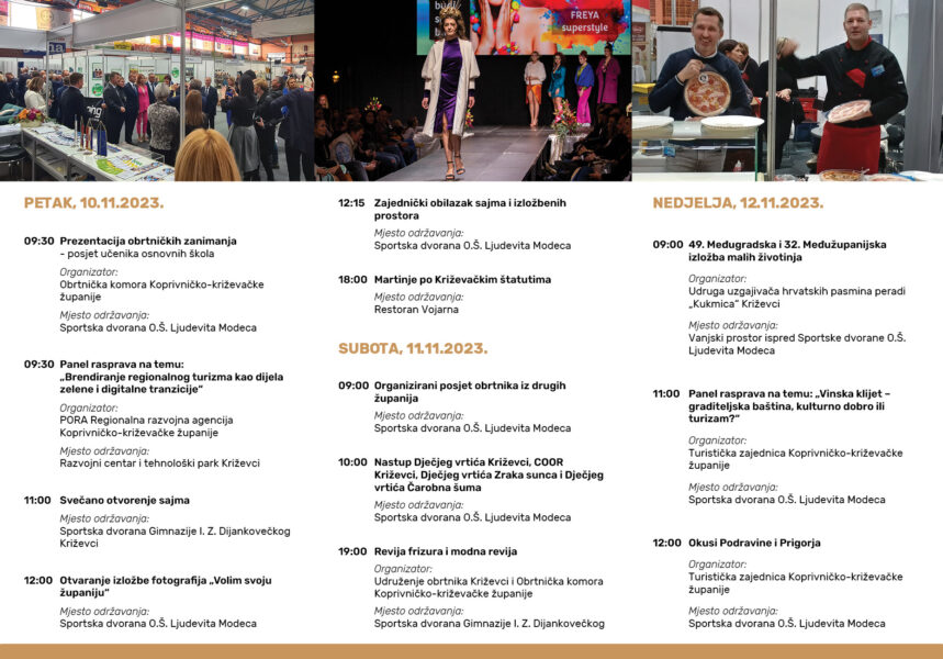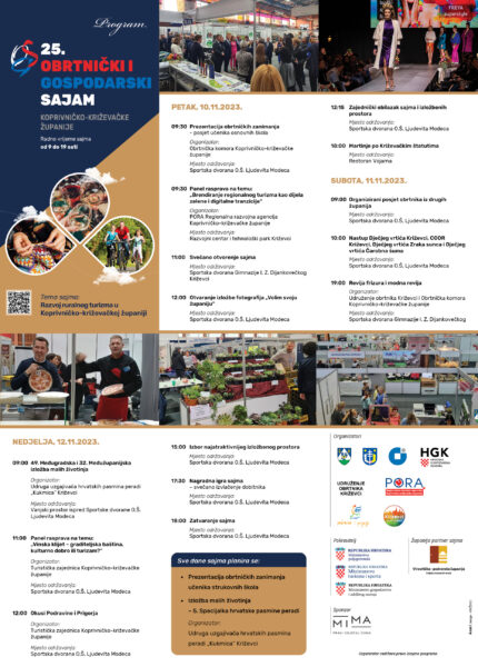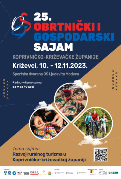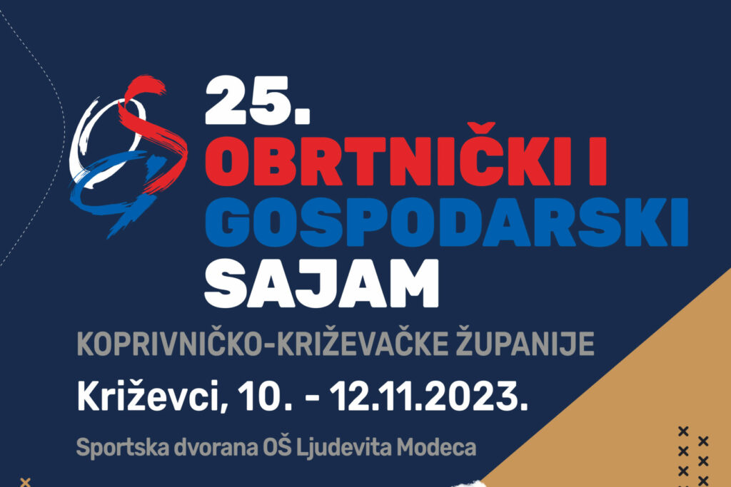 Tijekom iduće vikenda, od 10. do 12. studenoga 2023. godine u Križevcima će se održati 25. Obrtnički i gospodarski sajam Koprivničko-križevačke županije, najvažnija županijska manifestacija posvećena promociji obrtništva i poduzetništva. U tri dana trajanja manifestacije svoje će proizvode i usluge posjetiteljima i potencijalnim poslovnim partnerima predstaviti brojni izlagači iz Hrvatske i inozemstva. Ove godine tema sajma je “Razvoj ruralnog turizma u Koprivničko-križevačkoj županiji”, a partner sajma je Virovitičko-podravska županija.