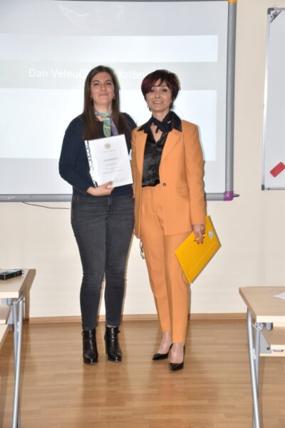 Dodijeljene su dvije nagrade za izvrsnost u znanstvenom i stručnom radu nastavnika Veleučilišta. U kategoriji Najveća znanstvena produktivnost priznanje je dobila dr. sc. Matea Habuš, a u kategoriji Izvrsnost u nastavi i radu sa studentima priznanje je dobila dr. sc. Renata Erhatić.