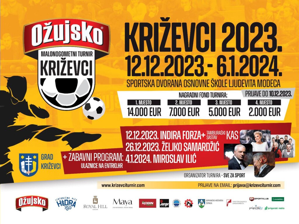 Ovogodišnje izdanje Ožujsko malonogometnog turnira Križevci 2023., sasvim sigurno će okupiti rekordan broj ekipa, a turnir će se održati od 12. prosinca 2023. do 6. siječnja 2024. godine u dvorani Osnovne škole Ljudevita Modeca u Križevcima.