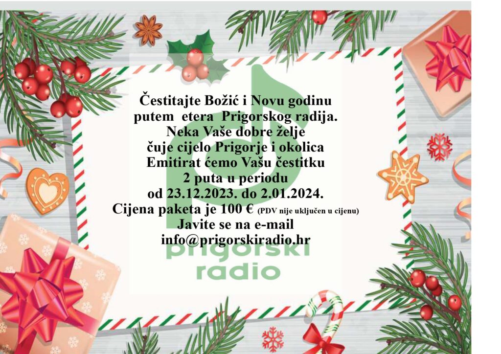 Čestitajte Božić i Novu godinu putem etera Prigorskog radija. Neka Vaše dobre želje čuje cijelo Prigorje i okolica.