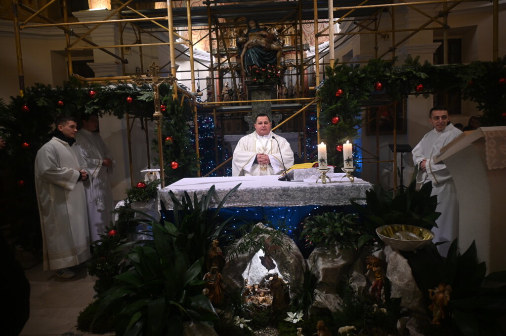 Misa polnoćka održana je u župnoj crkvi Bl. Djevice Marije Žalosne i sv. Marka Križevčanina u Križevcima, a misno slavlje predvodio je župnik Kristijan Bogdan. -Ovim slavljem ulazimo u jedan od najdražih nam blagdana, rođenja Isusa Krista. Božić je obiteljski blagdan, blagdan zajedništva, ljubavi, blagosti, nježnosti, darovanosti, jer darovano nam je djetešce koji nas raširenih ruku sve zove k sebi i kao da nam govori “ne boj se mene, ja sam tvoj spasitelj, ja sam tvoj Bog” – rekao je župnik i dodao kako je je lijepo u adventsko vrijeme vidjeti žaruljice na mnogim kućama.