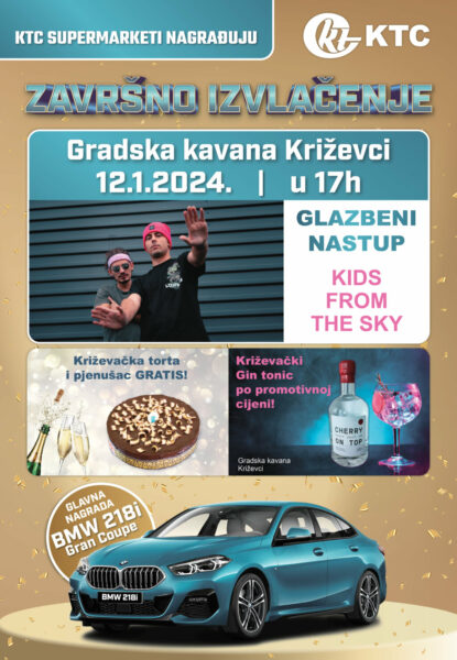 Dođite i saznajte tko će osvojiti BMW Gran Coupe. Izvlačenje će se održati u petak 12. siječnja u 17 sati ispred Gradske kavane u Križevcima.