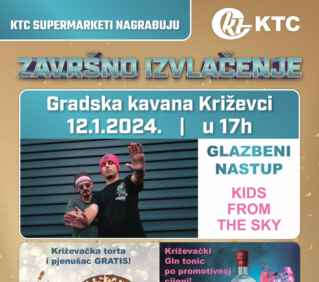 Križevački bend “Kids from the sky” zabavljat će okupljene na završnom izvlačenju velike nagradne igre KTC supermarketa.