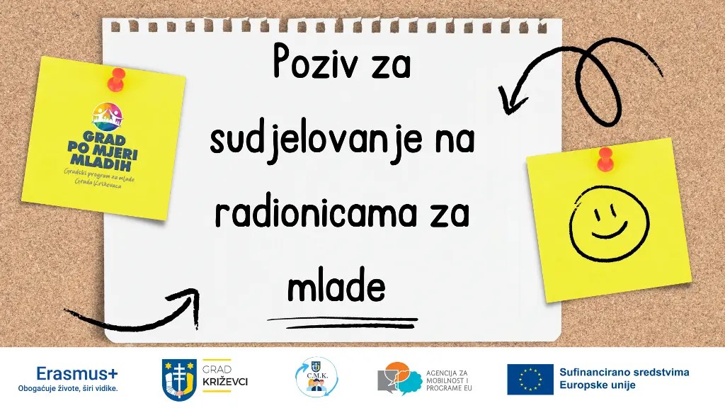 U sklopu projekta „Grad po mjeri mladih – Gradski program za mlade Grada Križevaca“ kojeg provodi Grad Križevci u partnerstvu s Centrom za mlade Križevci, uz financijsku podršku Europske unije, u okviru programa Erasmus +, u razdoblju od 9. do 15. siječnja 2024. godine održat će se 5 tematskih radionica za mlade.