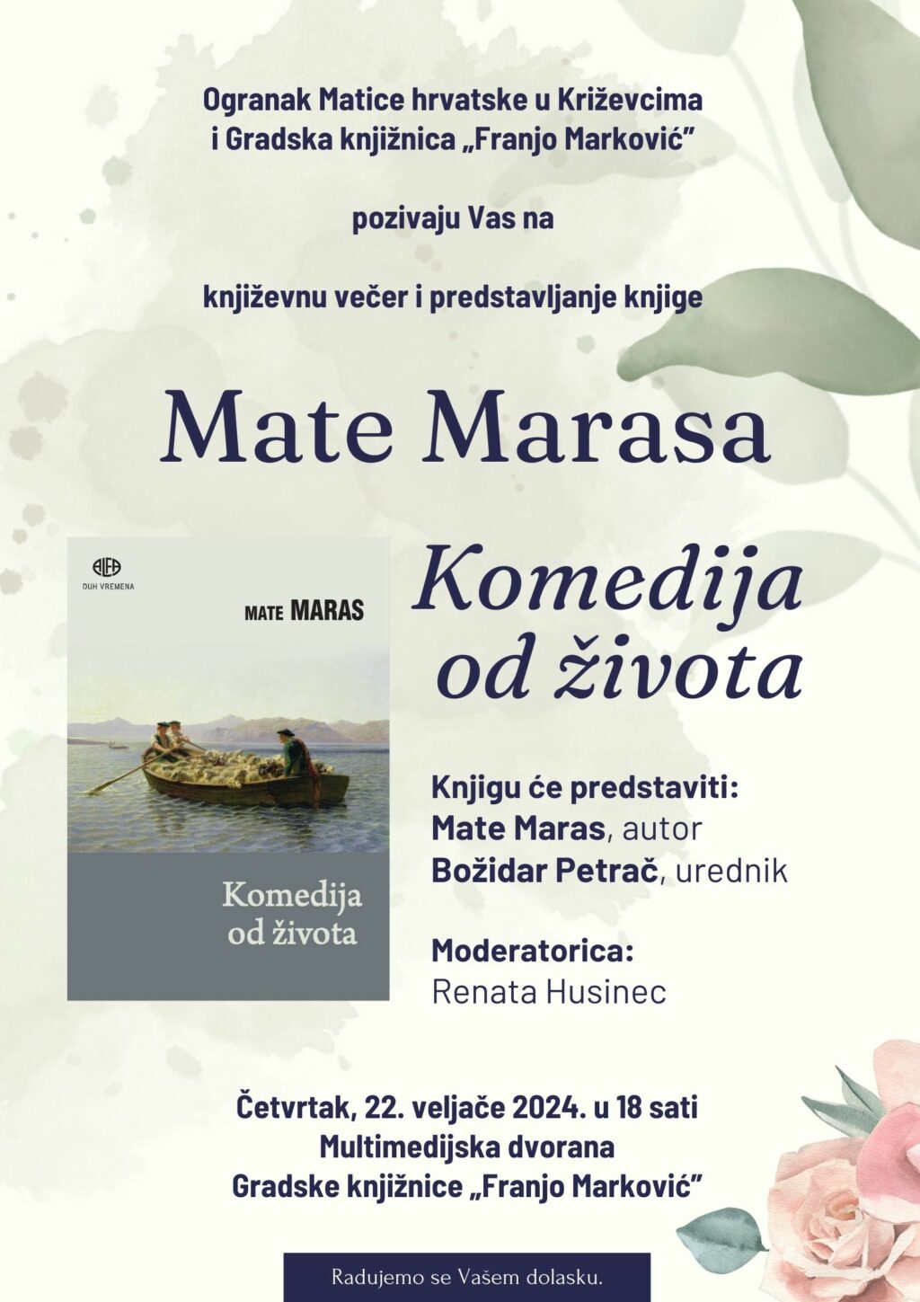 Ogranak Matice hrvatske u Križevcima i Gradska knjižnica “Franjo Marković” pozivaju na književnu večer i predstavljanje knjige Mate Marasa u Križevcima.