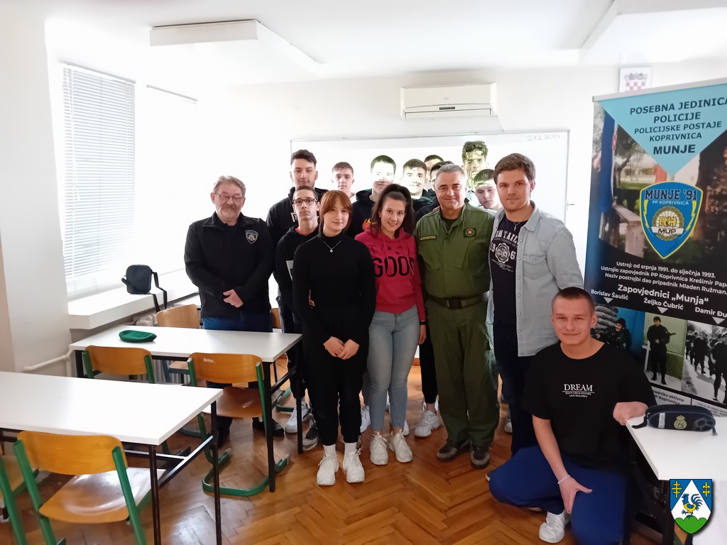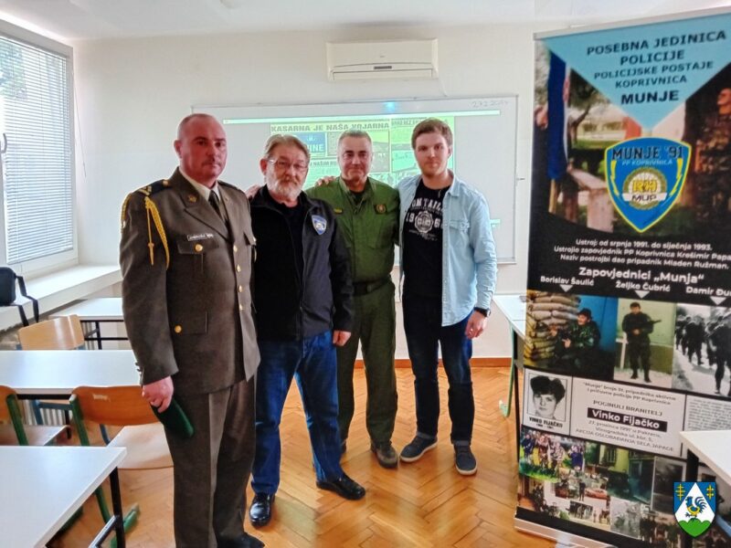 Provedba programa započela je predavanjem na poziv profesora Filipa Šokeca i 3.K razreda Srednje škole Koprivnica – usmjerenje fizioterapeutski tehničar, koji su pobliže saznali detalje na temu “Koprivničanci u Domovinskom ratu, oslobađanje objekata JNA”.
