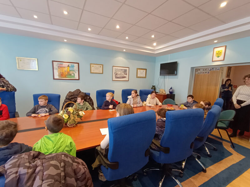 Učenike je dočekao načelnik Općine Kalinovac Darko Sobota i njegove suradnice. Pružio im je dobrodošlicu i objasnio im ulogu općine u njihovom životu. Učenici su pažljivo slušali i postavljali pitanja.