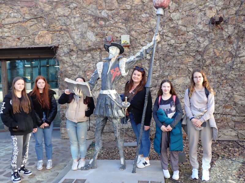 Erasmus+ projekt koji je omogućio ovu mobilnost zove se “Čitaj da ne ostaneš bez riječi”. U fokusu mobilnosti bio je roman “Don Quijote” španjolskog autora Miguela de Cervantesa. Učenici su o neobičnom vitezu čije puno ime sadrži i ime pokrajine La Mancha, učili u njegovu muzeju u gradu Cuidad Realu te u spilji u kojoj se odvijaju dva poglavlja romana. Ta se spilja nalazi u nacionalnom parku Lagunas De Ruidera, pobratimu naših Plitivca od 2022. godine.