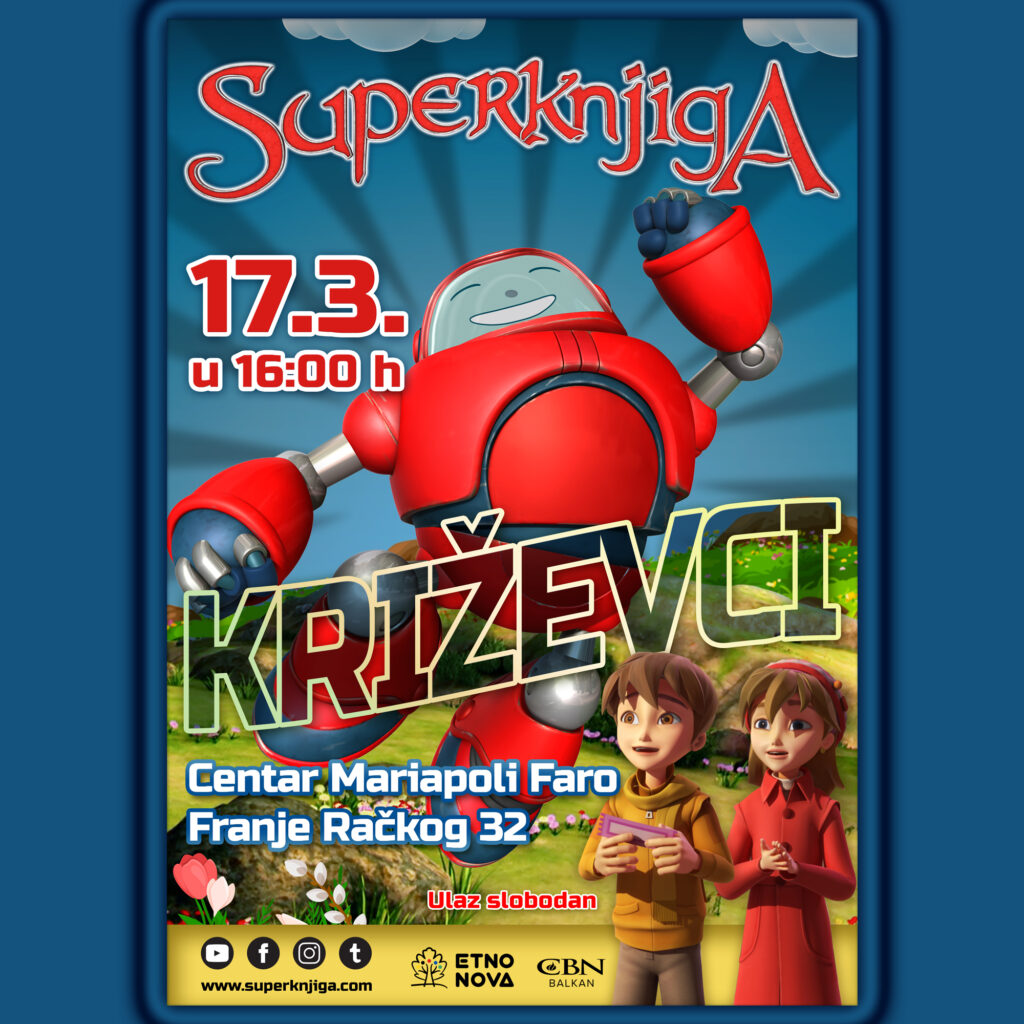 Ove nedjelje Gizmo dolazi u Križevce u Centar Mariapoli Faro u 16 sati. Djeca će se s njime moći upoznati, slikati, s njim će pjevati i plesati uz poznate im pjesme iz Superknjige. Na kraju bit će prikazan sinkronizarni crtani film iz najnovije sezone Superknjige, a koji će djeca po prvi puta moći pogledati.