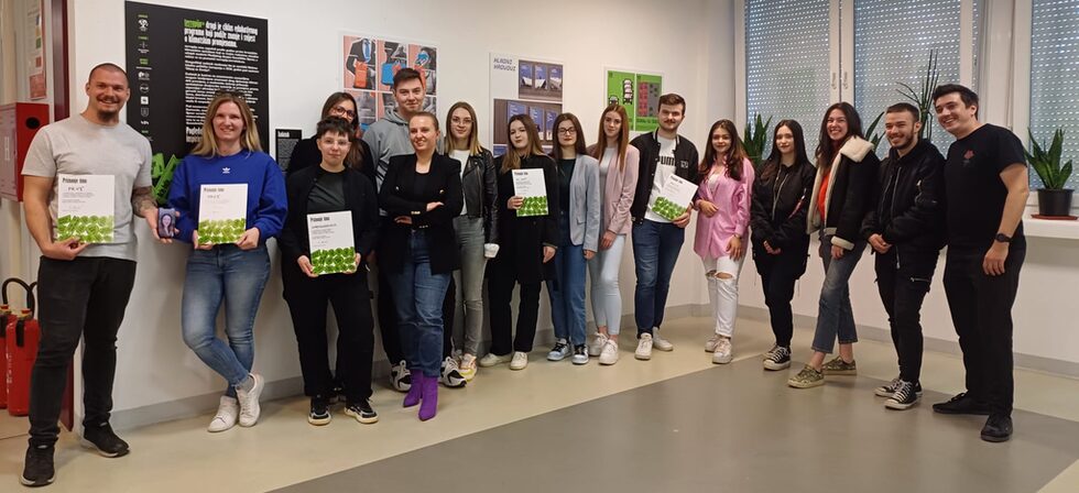 „Nekonvencionalnim informativno-edukativnim plakatima, aplikacijom s receptima, reklamnim novinskim letkom i smart karticom za sakupljanje bodova i ostvarivanje bonus-nagrada, fokus stavljamo na hranu koja je zbog svog „neatraktivnog” izgleda neželjena, što je razlog njenog bacanja, kao i na hranu kojoj je istekao „rok trajanja”, no i dalje se može konzumirati. Ovakva alternativna rješenja fokusirana na dobrobit zajednice, ključ su u borbi protiv nepovoljnih klimatskih promjena“, obrazložile su svoju ideju Viktorija Paljug, Nadja Orkić i Denis Jakupi, članovi autorskog tima PRV1º.