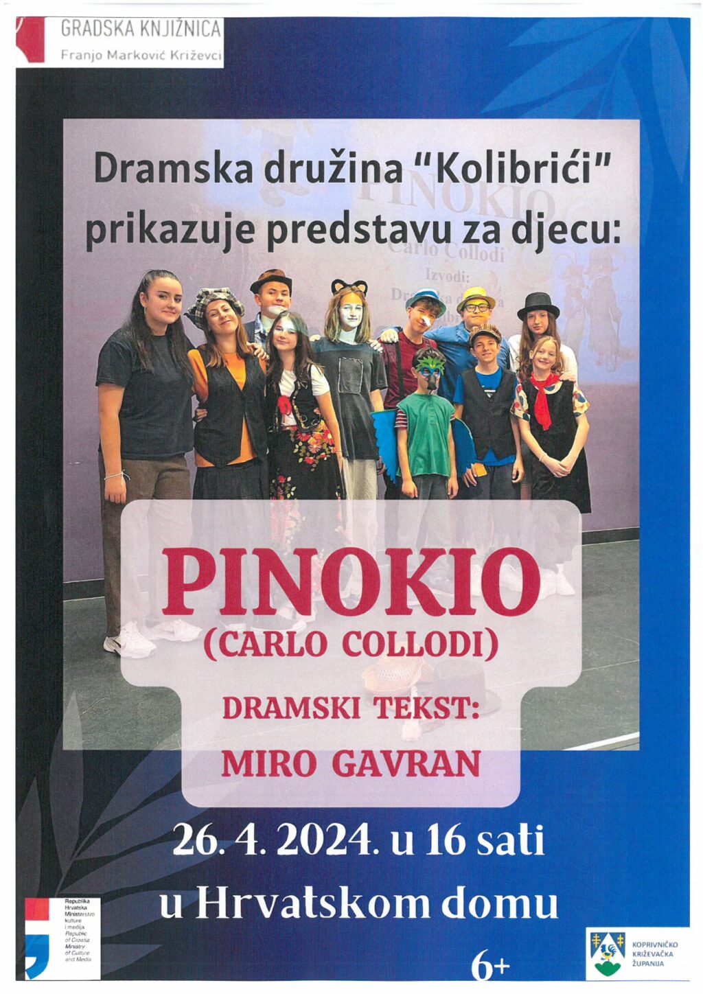 Prestava Pinokio prema tekstu Mire Gavrana održat će se u petak povodom Dana grada u Velikoj dvorani Hrvatskog doma u Križevcima s početkom u 16 sati.
