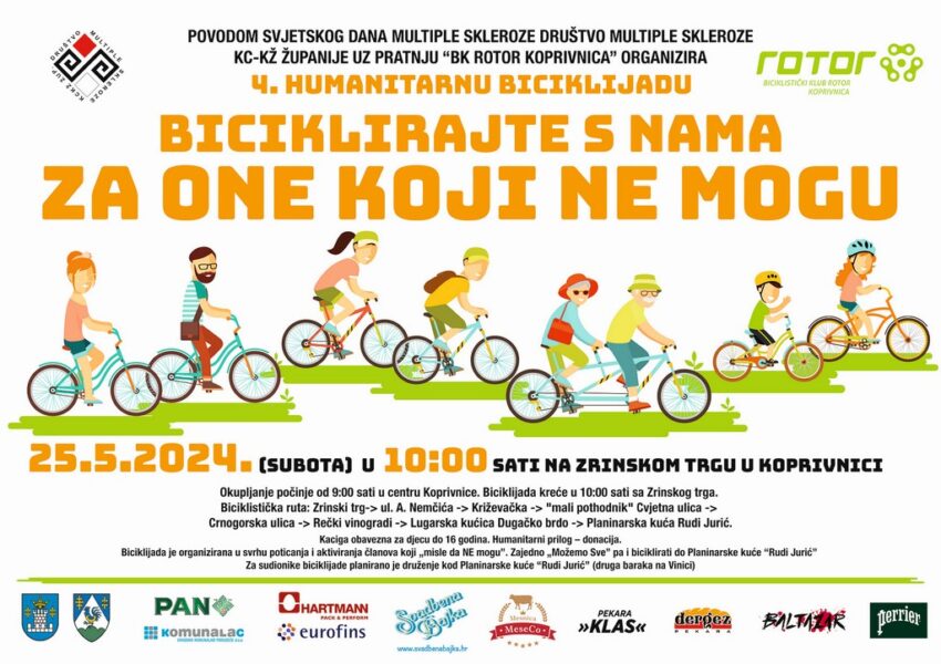 U prostorijama Županijske uprave u utorak je održana konferencija za medije na kojoj je najavljena 4. humanitarna biciklijada „Biciklirajte s nama za one koji ne mogu“, a ispred Županijske uprave prisustvovali su joj zamjenik župana Ratimir Ljubić i pročelnica Melita Ivančić. Biciklijadu povodom obilježavanja Svjetskog dana multiple skleroze tradicionalno organiziraju Županijsko Društvo multiple skleroze i Biciklistički klub „Rotor“ Koprivnica uz suorganizaciju i pokroviteljstvo Koprivničko-križevačke županije.