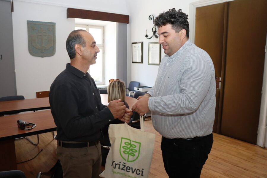 U srijedu 22. svibnja, učitelja Thanosa Savvidisa, ravnatelja Igora Brkića i koordinatoricu  Erasmus programa Andreu Katanović Babić primio je gradonačelnik Mario Rajn koji je gostu  poželio dobrodošlicu u grad, ukratko ga upoznajući s Križevcima te istaknuvši vrijednost  ovakvih projekata u razmjeni iskustva na svim poljima. Gradonačelnik je Thanosu Savvidisu  uručio i prigodni poklon s križevačkim proizvodima.