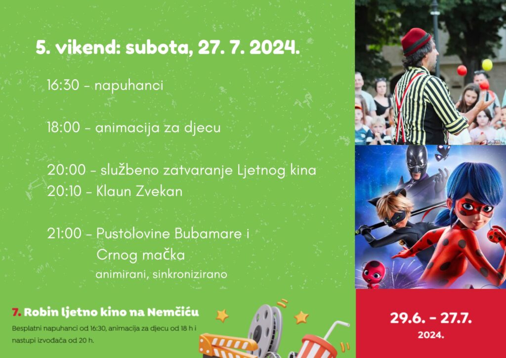Do kraja je stiglo ovogodišnje Ljetno kino na Nemčiću. “Pridružite nam se zato ove subote 27. 7. i uživajte u programu”, poručuju organizatori. Pogledajte program: