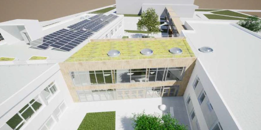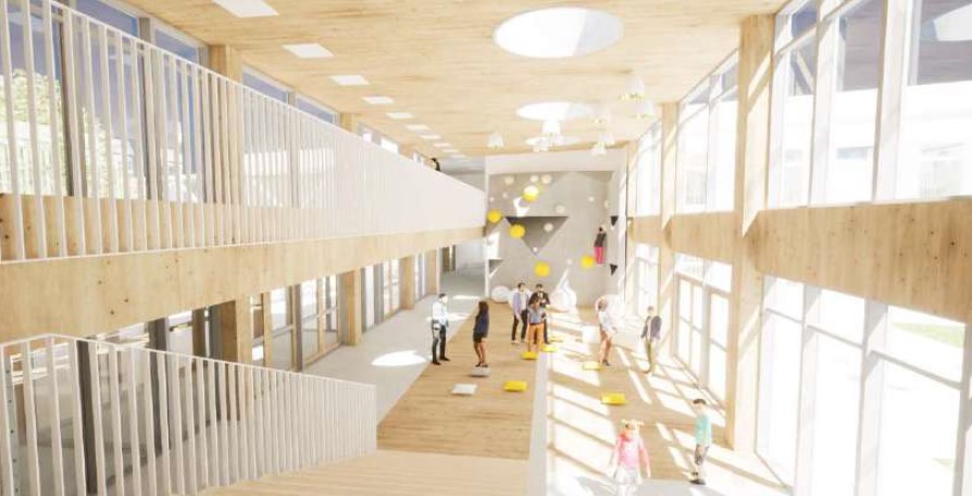 učenici dolaziti hodnikom koji će se izgraditi iznad postojećeg parkinga uz dvoranu.