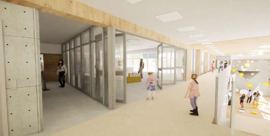 učenici dolaziti hodnikom koji će se izgraditi iznad postojećeg parkinga uz dvoranu.