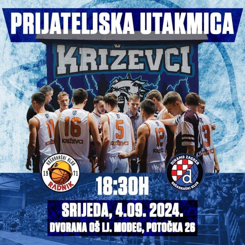 KK Radnik Križevci – KK Dinamo Zagreb, prijateljska utakmica odigrat će se 4. rujna u Križevcima s početkom u 18.30 sati.
