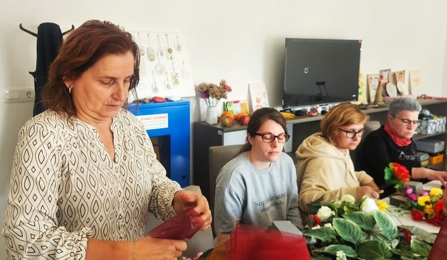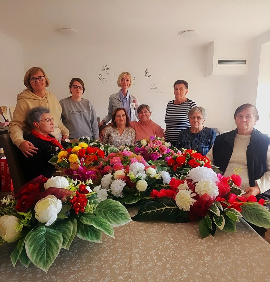 Budući da se približava blagdan Svih svetih odlučili su se za izradu cvjetnih aranžmana od umjetnog cvijeća. U tome im je pomogla gošća i voditeljica ove radionice Silvija Seleš. I sama zaljubljenica u cvijeće s puno kreativnih ideja pokazala je korisnicama kako od pojedinačnih strukova cvijeća izraditi pravo malo umjetničko djelo koje iziskuje spretnost ruku i smisao za lijepo. Pod njenim vodstvom korisnice su uživale u novom kreativnom izazovu.