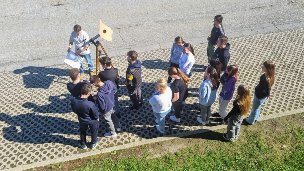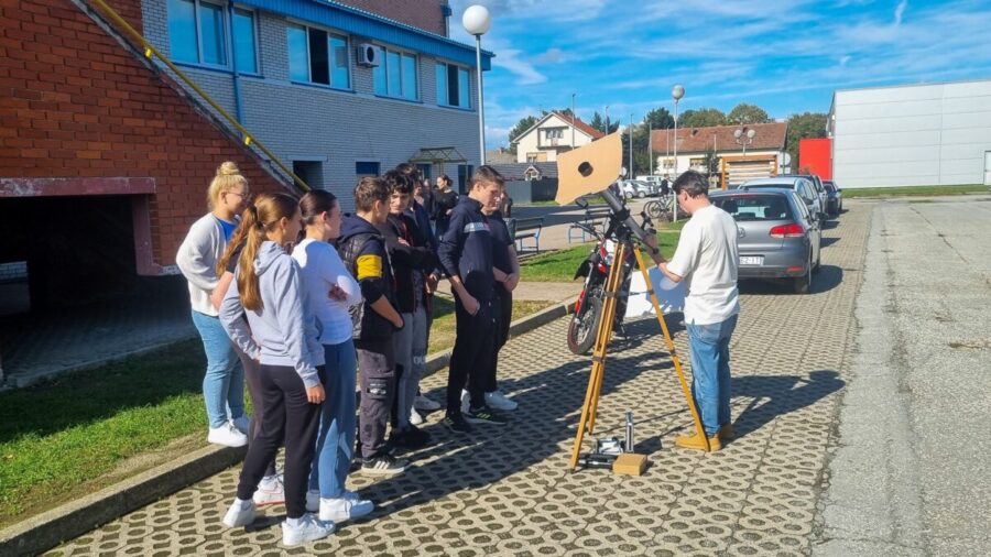 Praktični dio događanja održan je u školskom dvorištu, gdje su učenici, koristeći filtre i projekciju, promatrali površinu Sunca. Oduševljeni su bili velikim brojem sunčevih pjega, od kojih je jedna bila veličine cijele Zemlje. Branko Novosel, voditelj promatranja, objasnio im je nastanak pjega i drugih pojava na Suncu, potičući kod učenika daljnju znatiželju i interes za astronomiju.