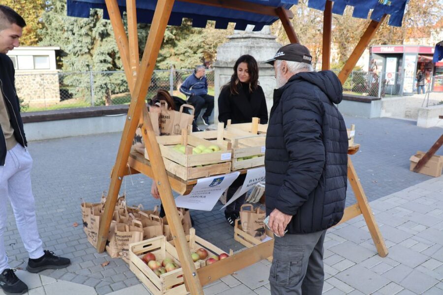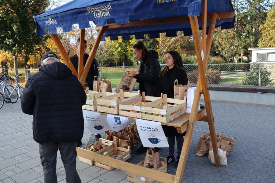 Podjela jabuka organizira je bila na dva štanda, a u realizaciji iste sudjelovali su vrijedni koprivnički studenti – korisnici gradske stipendije.