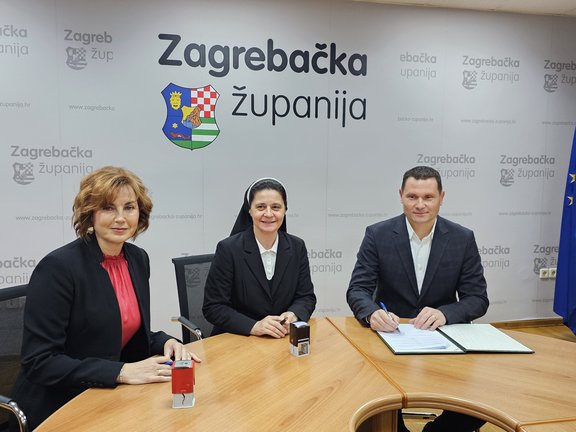 Ugovore su potpisali zamjenik župana Zagrebačke županije Ervin Kolarec, sestra Jelena Lončar, ravnateljica Caritasa Zagrebačke nadbiskupije i Senka Klarić, upraviteljica Zaklade Hrvatske pošte.