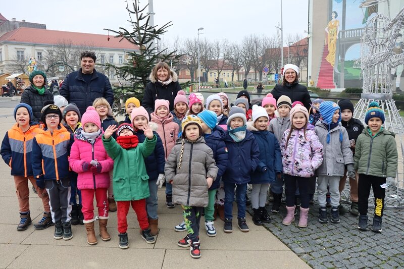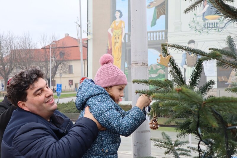 Djeca ukrasila božićna drvca na Strossmayerovom trgu u Križevcima