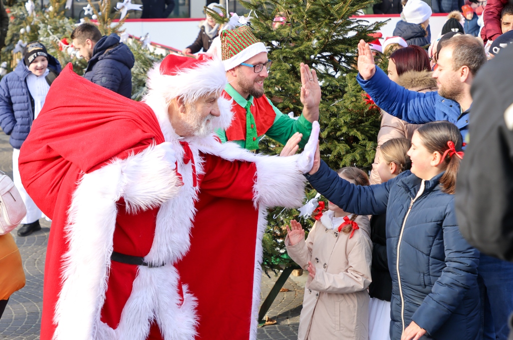 Dolazak Djeda Mraza i njegovog pomoćnika vilenjaka na centralnom gradskom trgu željno su dočekala brojna djeca, a on se s njima razgovarao, šalio i dijelio poklone, te udovoljavao njihovim željama za zajedničko fotografiranje. Poseban program za njegov dolazak pripremili su mališani iz Dječjeg vrtića Maslačak i Folklorna skupina Osnovne škole Đurđevac.