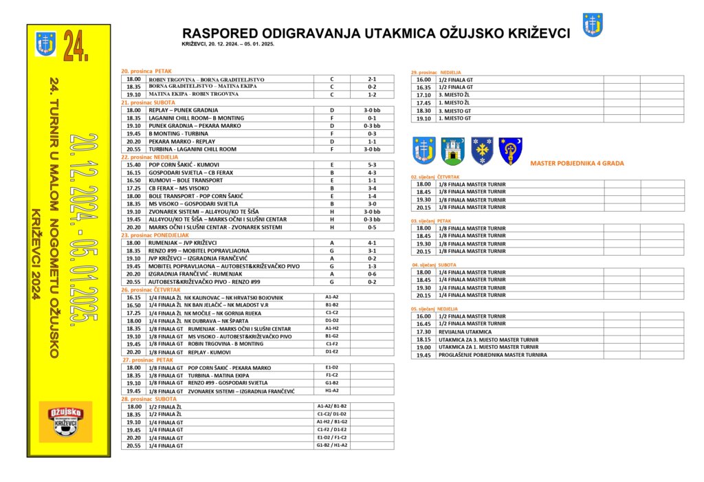 Glavni turnir “Križevci Ožujsko 2024” došao je do osmine finala, a prve četiri utakmice odigrat će se nakon četvrtfinala turnira županijskih klubova na Štefanje u 18 sati.