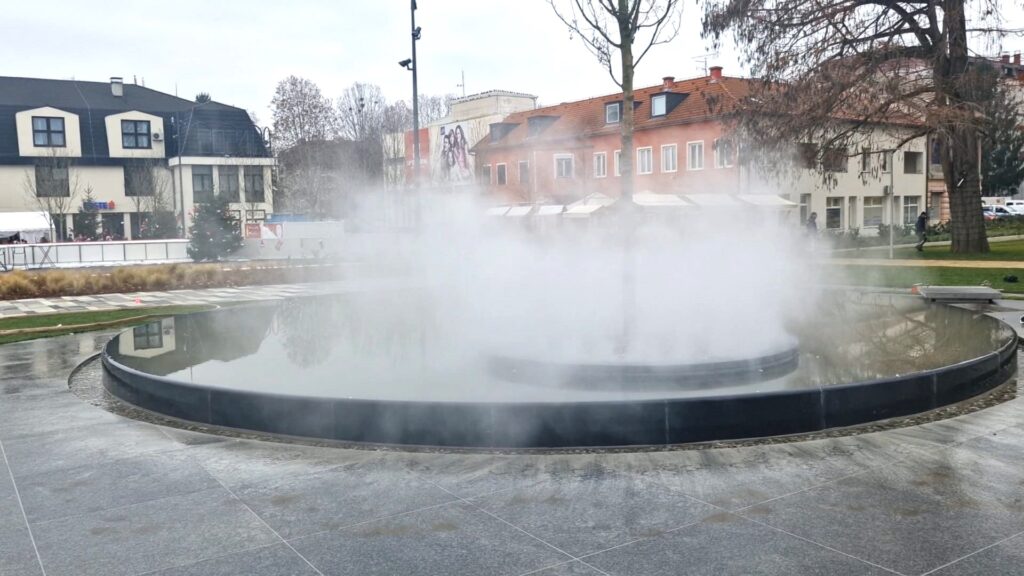 Nova je fontana danas napunjena vodom te je isprobana funkcija puštanja magle koja je iznenadila i oduševila prolaznike koji su se danas našli na trgu.