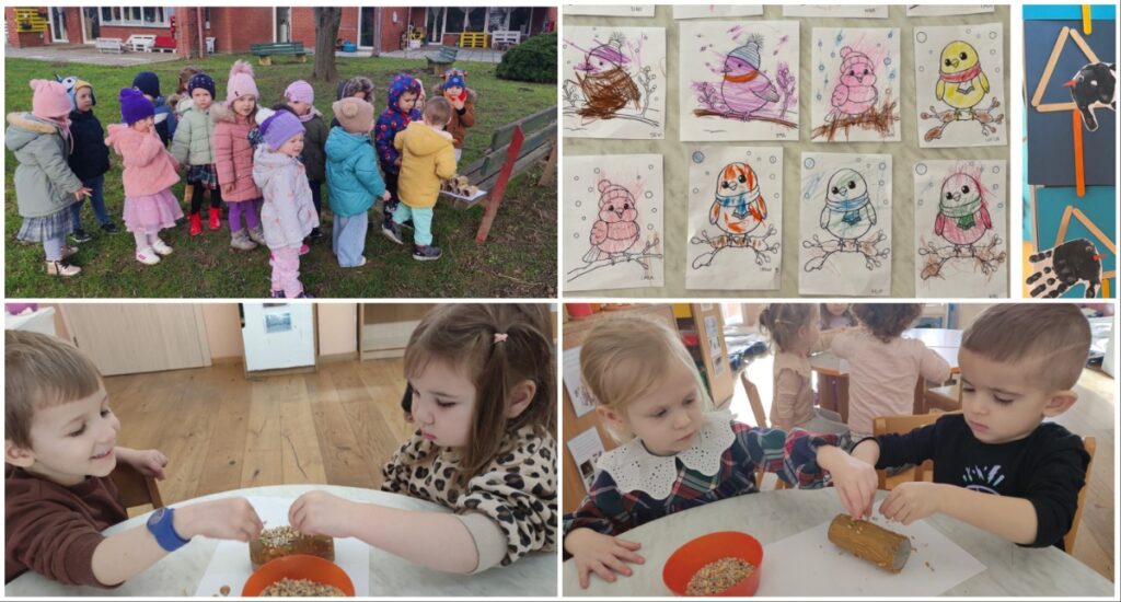 S pomoću poticajnih fotografija i edukativnih videozapisa naučili su koje ptice ostaju ovdje, a koje odlaze u toplije krajeve. Slušali su zvukove cvrkuta ptica i uspoređivali ih, naučili su i pjesmice: Jedna vrana gakala i Ljuti se vrapčić na zimu.