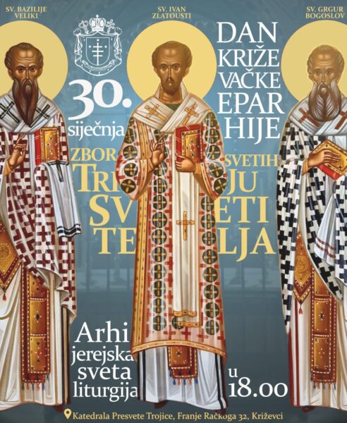 U četvrtak, 30. siječnja 2025. godine, Križevačka eparhija slavi svoje nebeske zaštitnike sveta tri hijerarha Bazilija Velikoga, Grgura Bogoslova i Ivana Zlatoustoga.