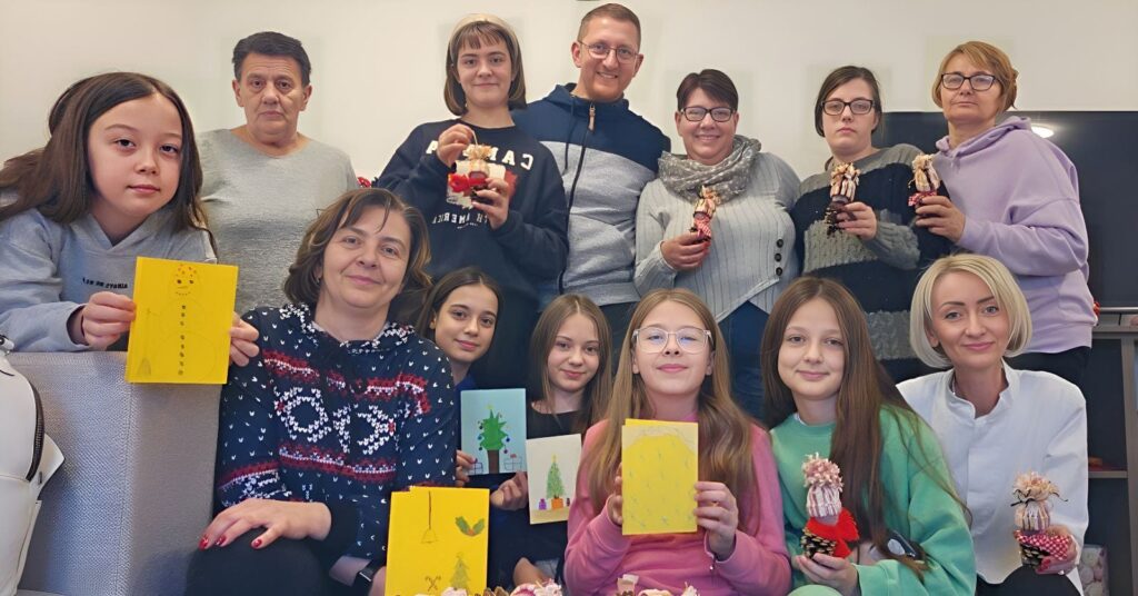 U dogovoru s roditeljima i učenicima odlučili su volontirati na ovaj način pa smo s gospođom Majom Biletić dogovorili posjet Centru za osobe s invaliditetom Đurđevac. Tako se tijekom prosinca u Centru jedan dio učenika izvannastavne aktivnosti Ruke ljubavi družio na poludnevnom boravku s članicama Gradskog društva osoba s invaliditetom Đurđevac.