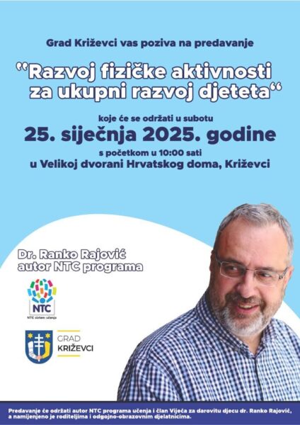 Dr. Ranko Rajović pružit će konkretne primjere i savjete kako pomoći djeci te što je ključno za roditelje i sve koji rade s djecom u njihovim odgoju. Predavanje dr. Rajovića financira Grad Križevci, a odvija se u sklopu programa “Grad Križevci-prijatelj djece”.
