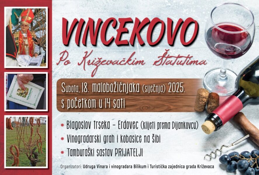Vincekovo po Križevačkim štatutima održat će se u subotu, 18. siječnja 2025. godine s početkom u 14 sati na lokaciji Erdovec – klijeti prema Dijankovcu.