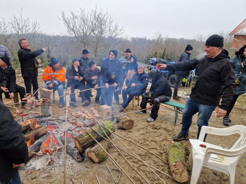 Okupljanje je bilo kod kleti Zlatka Hrga. Uz neizostavno kićenje trsova kobasicama i zalijevanje vinom, prisutni su mogli kušati pečene kobasice te uživati u dobroj kapljici i živoj glazbi grupe Ines.