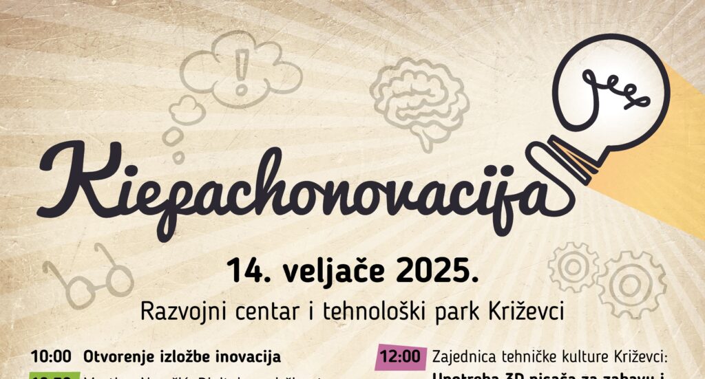 U Razvojnom centaru i tehnološkom parku Križevci (Ulica Franje Tuđmana 20) u petak u 10.00 sati otvara se još jedna izložba inovacija „Kiepachonovacija“ koja se odvija u sklopu Dana Marcela pl. Kiepacha.