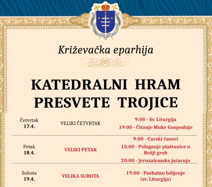 Sveto trodnevlje i raspored bogoslužja u križevačkoj katedrali