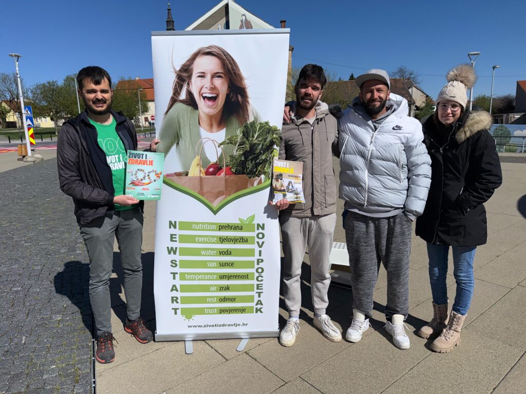 Akcija traje od 10-13 sati. Udruga “Život i zdravlje” promiče zdrav način života kroz edukaciju, podršku i program NEW START – prehrana, kretanje, voda, sunce, umjerenost, zrak, odmor i povjerenje.