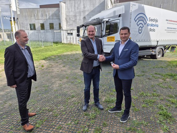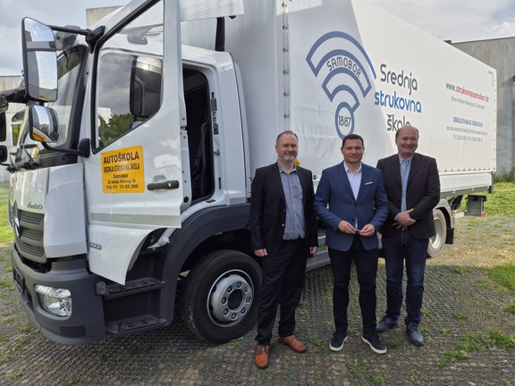 Zamjenik župana Zagrebačke županije Ervin Kolarec uručio je u utorak ključeve novog teretnog vozila za potrebe osposobljavanja učenika ravnatelju Srednje strukovne škole Samobor Davoru Škiljanu.