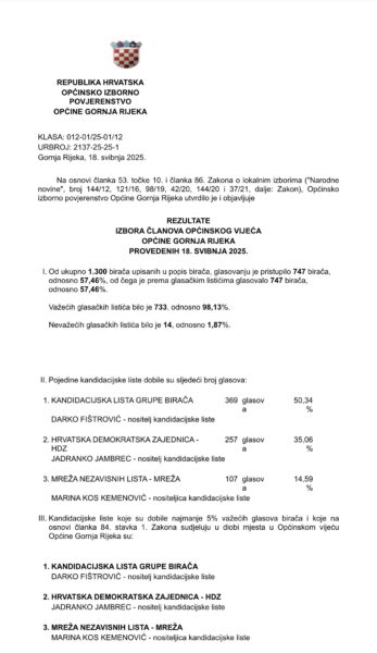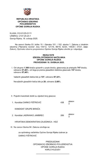 Donosimo rezultate održanih lokalnih izbora u Općini Gornja Rijeka.