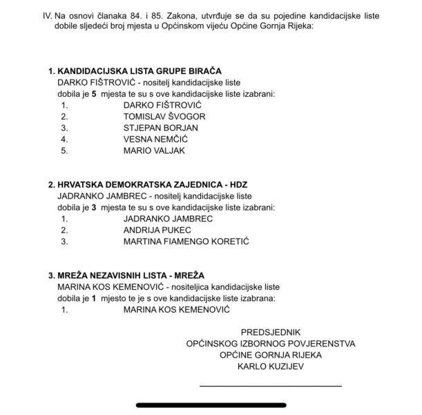 Rezultati izbora u Općini Gornja Rijeka