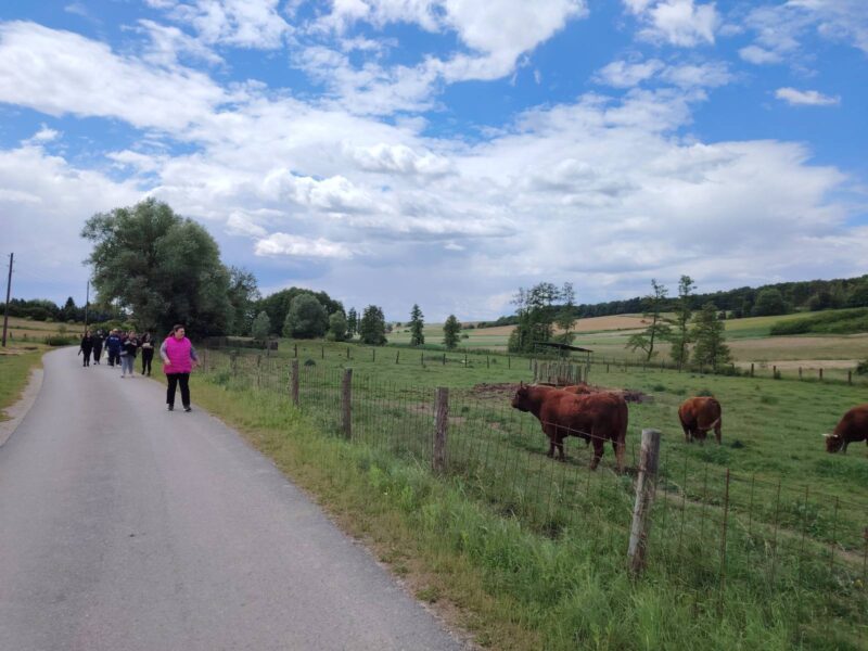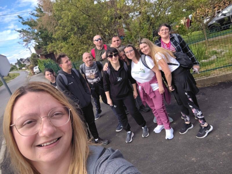 Put ka jezeru započela je manja grupa korisnika pješačeći u pratnji voditeljica i vozača te se sa preostalim sudionicima sastala u dvorištu OPG-a Rakić koji su „putnike namjernike“ lijepo ugostili na čemu iz Udruge zahvaljuju.
